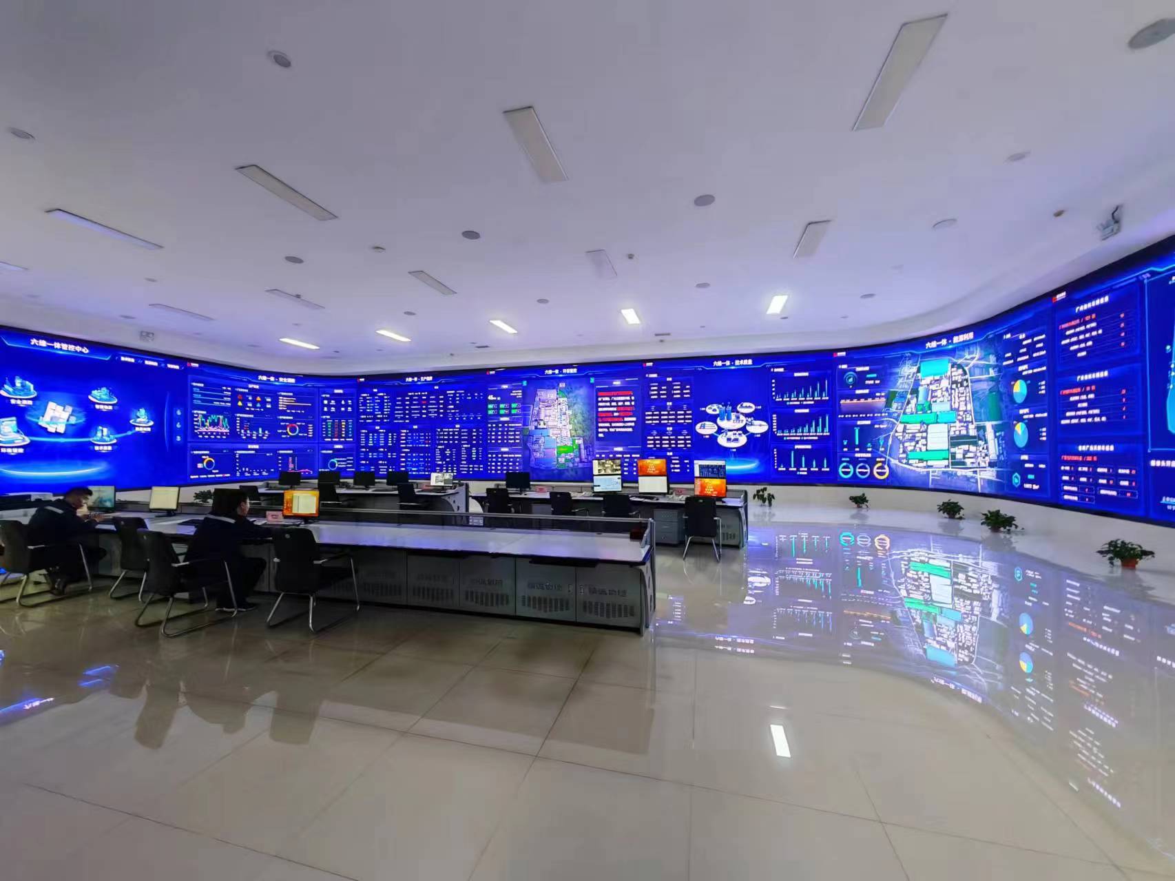 德龍鋼鐵有限公司依托工業互聯網平臺,為企業提供了跨設備、跨系統、跨廠區、跨地區的互聯互通平臺。圖為企業六維一體安全生產指揮中心。