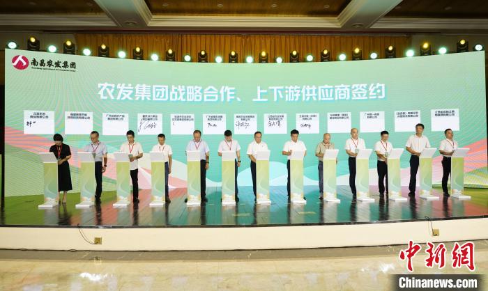圖為28日,南昌市政公用集團(tuán)旗下農(nóng)業(yè)發(fā)展集團(tuán)舉行品牌發(fā)布、招商推介暨農(nóng)業(yè)數(shù)據(jù)資產(chǎn)頒證活動(dòng)。主辦方供圖