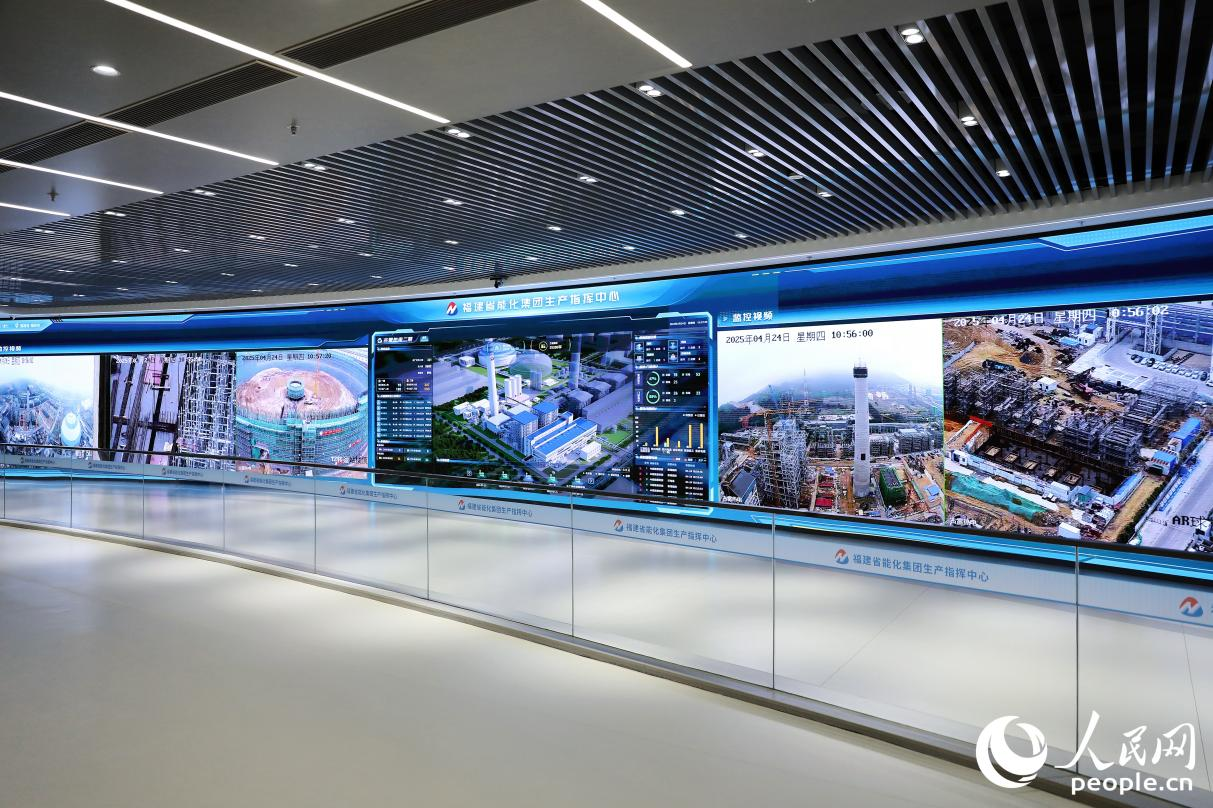 在福建能源石化集團生產指揮中心,一面30米長的弧形三維可視化大屏實時跳動畫面,綠色能源、高端材料重大項目建設正如火如荼。