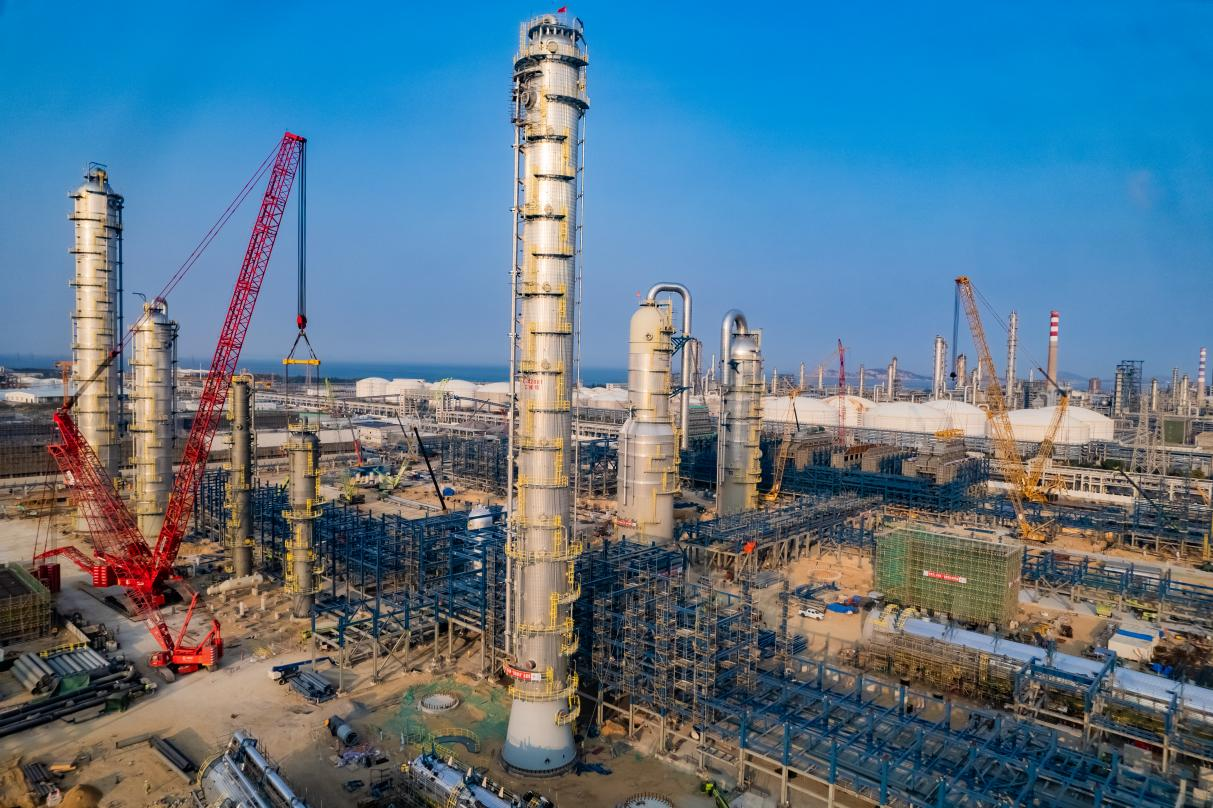 據了解,該項目由福建能源石化集團與沙特基礎工業公司合資建設,自去年2月19日主體工程全面動工以來,屢創國內新的施工紀錄,僅用32天就實現乙烯五塔“塔起燈亮”,全球最大EO/EG(環氧乙烷/乙二醇)洗滌塔僅用25天完成“穿衣戴帽”施工……預計該項目建成后年產值約300億元,將帶動上下游投資超千億元。
