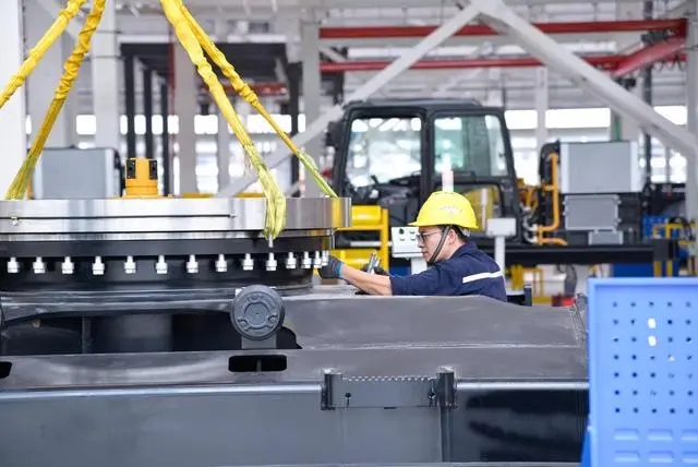 工人在位于重慶兩江新區(qū)的三一重工西南地區(qū)首個智能化“燈塔工廠”項目內(nèi)作業(yè) 新華社記者徐欽 攝